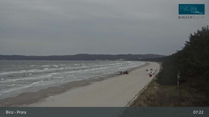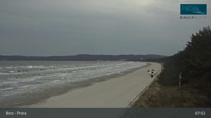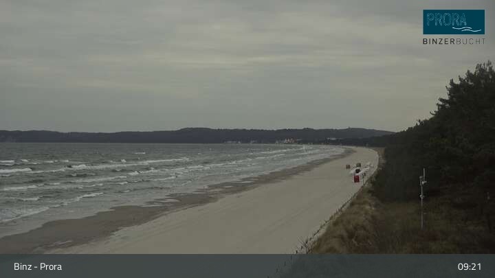 The camera is located on the island of Rügen on the beach of Prora and looks over the bay of Binz.