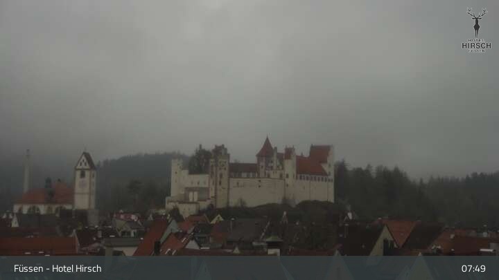 View of High Palace in Füssen. Webcam is located at Hotel Hirsch.