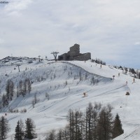 The view of the top station Kaiserburg in the ski resort Bad Kleinkirchheim in...